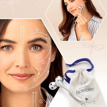Pour votre massage liftant quotidien sur le visage, le cou et le décolleté. Les 2 boules avec des points noirs en relief et 6 aimants intégrés roulent sur la peau. Elles peuvent stimuler la circulation sanguine et aider à réduire les ridules et à raffermir la peau. On se sent fraîche et comme revigorée. Fais-toi du bien tous les jours !